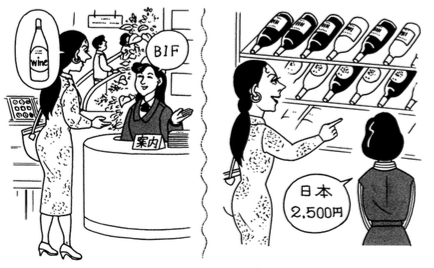 すみません。ワインうりばは どこですか。