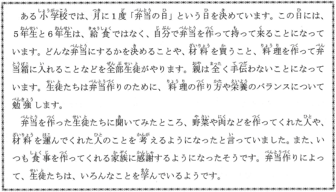 c. 生徒たちは学校で一緒に弁当を作ります。