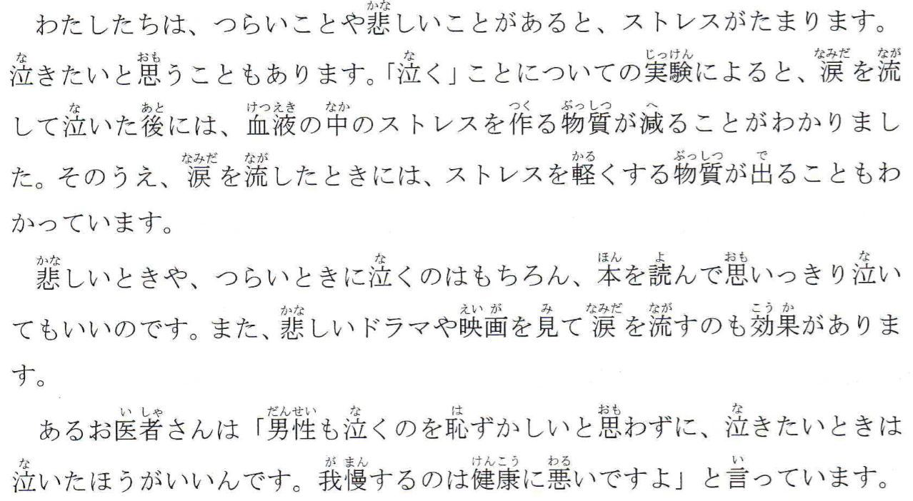 a. 本を読んで泣いても、ストレスを減らすのに効果はありません。